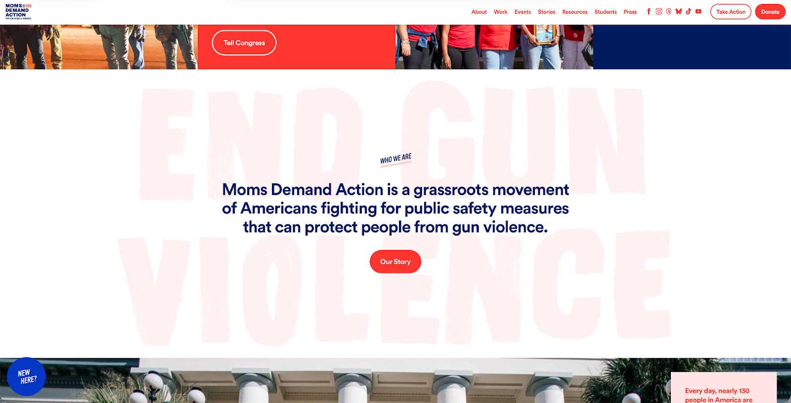 Moms Demand Action advocates for the implementation of public safety legislation and measures to protect communities from gun violence.
