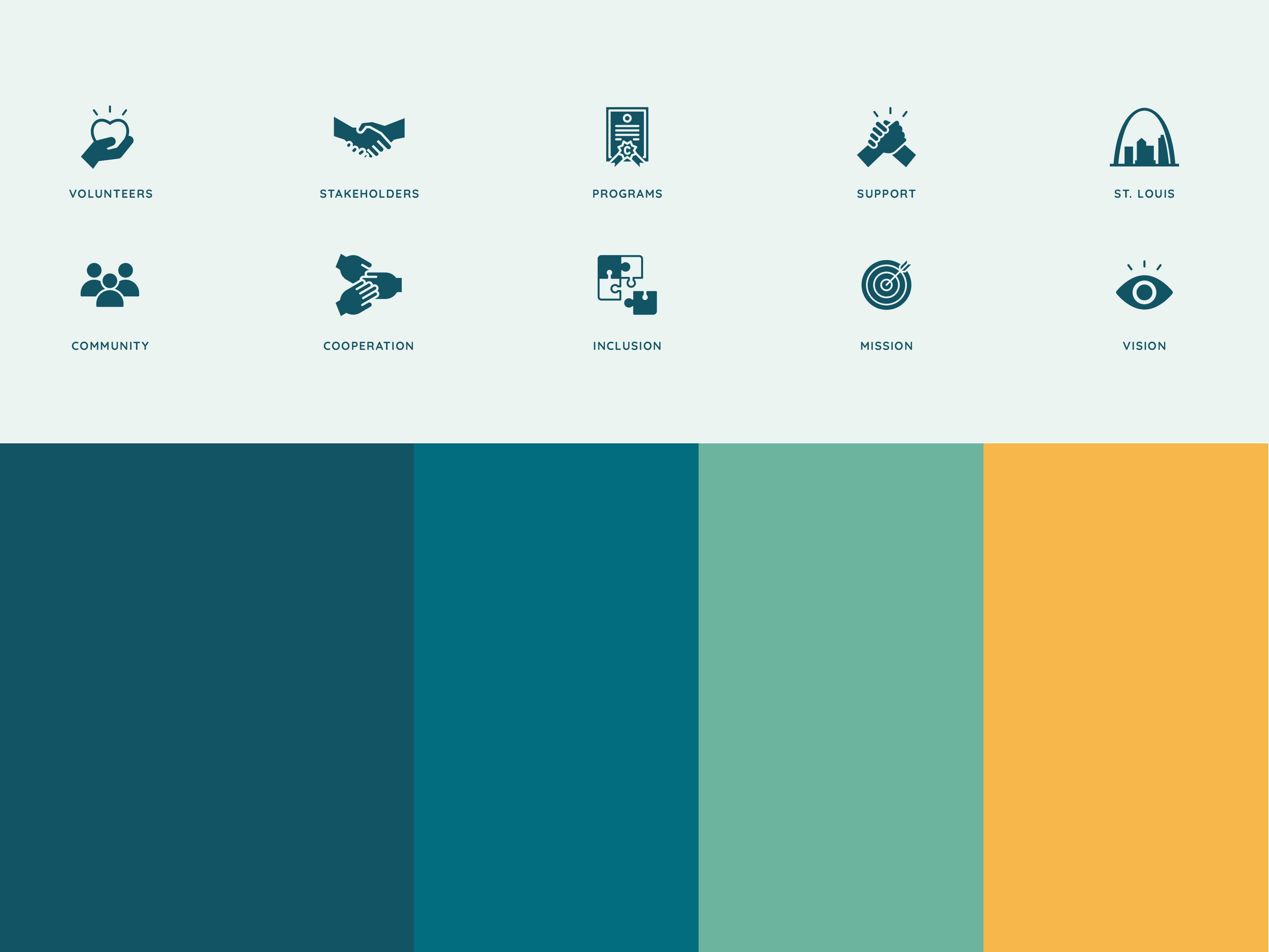 That's what happened here. While building the report, we saw that CCGF didn't have a consistent visual foundation. So we created one alongside the report: a full brand style guide covering logo usage, color palette with hex codes and Pantone values, typography specs, new design elements, new icon designs + guidelines, imagery standards, and layout systems. Now the team has everything they need to present themselves consistently every time.