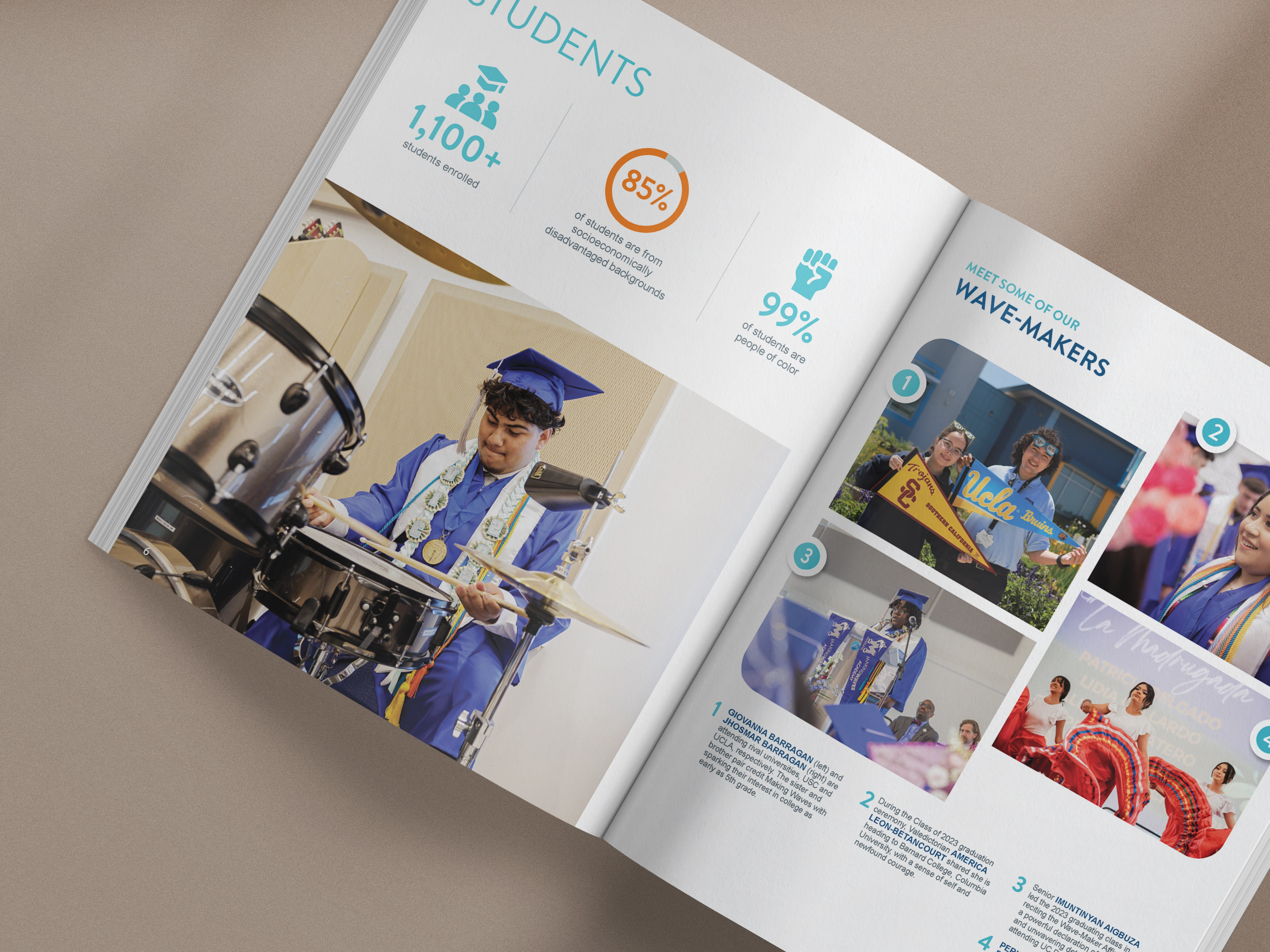 Making Waves now shows up consistently across every major touchpoint—from donor reports to campus walls.