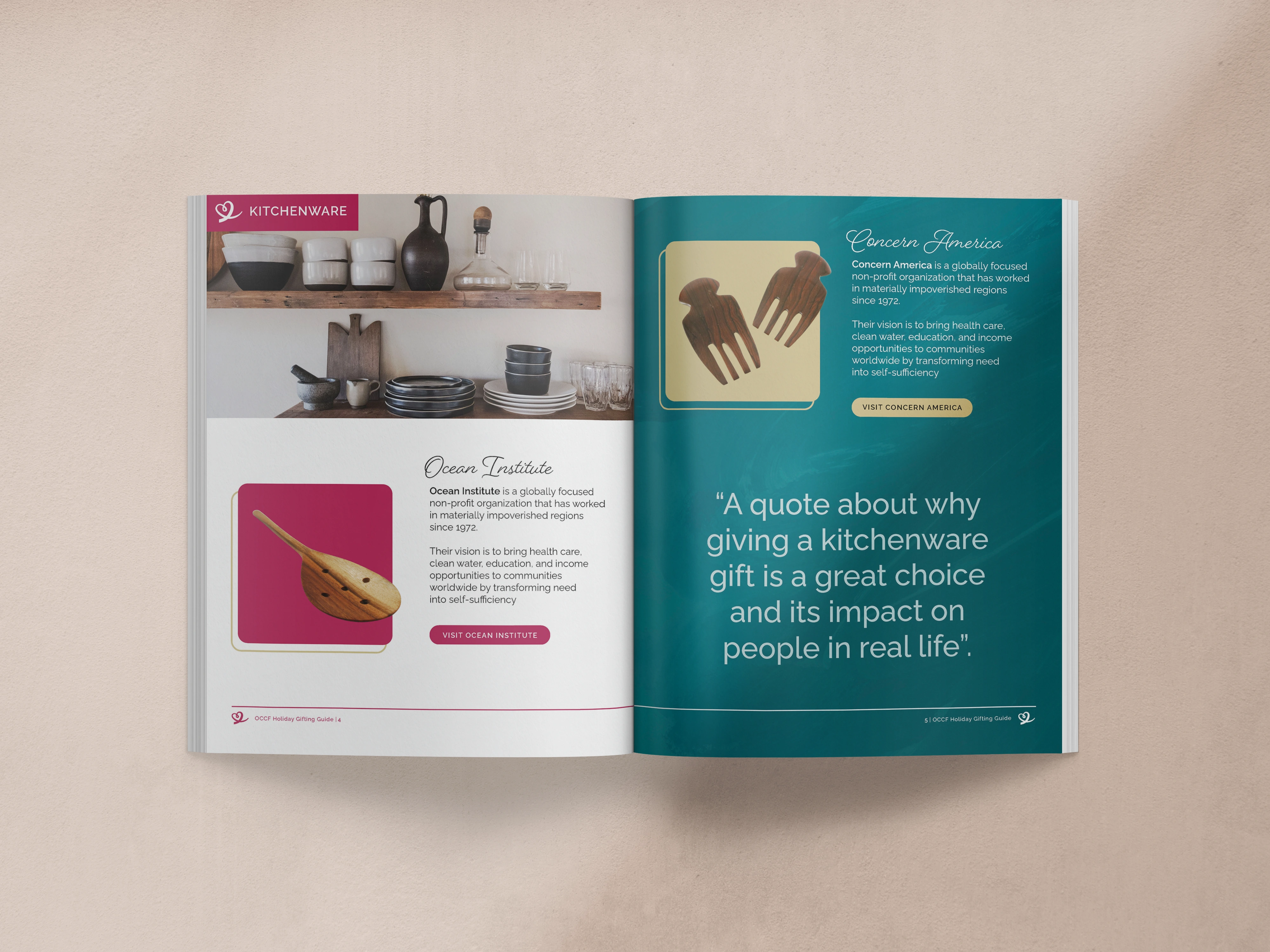 As their impact expanded, OCCF saw an opportunity to ensure their marketing materials reflected the same professionalism, clarity, and warmth donors experienced through their programs. The foundation had a wide range of materials created at different times by different designers. Each piece worked on its own but didn’t fully communicate a unified vision.