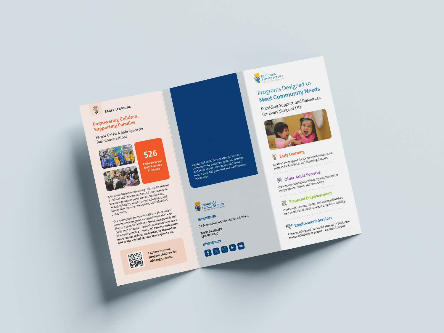 As a result, Peninsula Family Service gained a refreshed visual identity for its signature communications piece—one that honors its heritage while positioning the organization as forward-thinking, inclusive, and deeply connected to the Bay Area’s evolving needs.